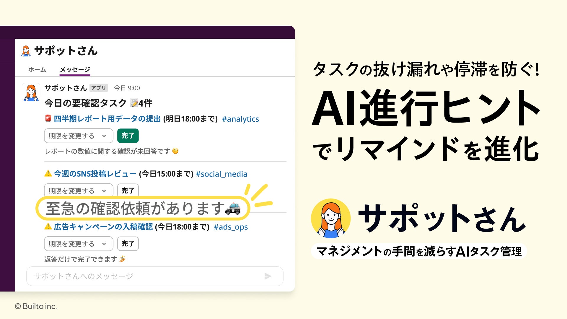 株式会社Builtoのプレスリリース(2025年9月24日 11時35分)マネジメントの手間を減らすAIタスク管理「サポ…