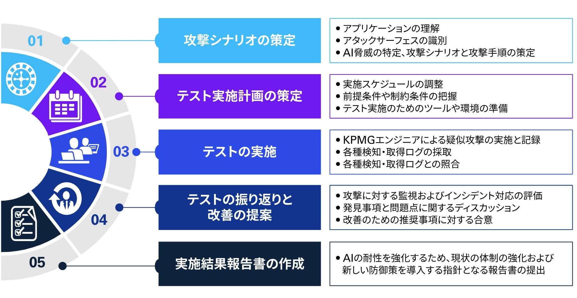 AI技術の進化に伴い、セキュリティの重要性が増しているため、KPMGは専門家チームを編成し、最新の攻撃手法を駆使して、企業に対するセキュリティ対策の向上を支援します。