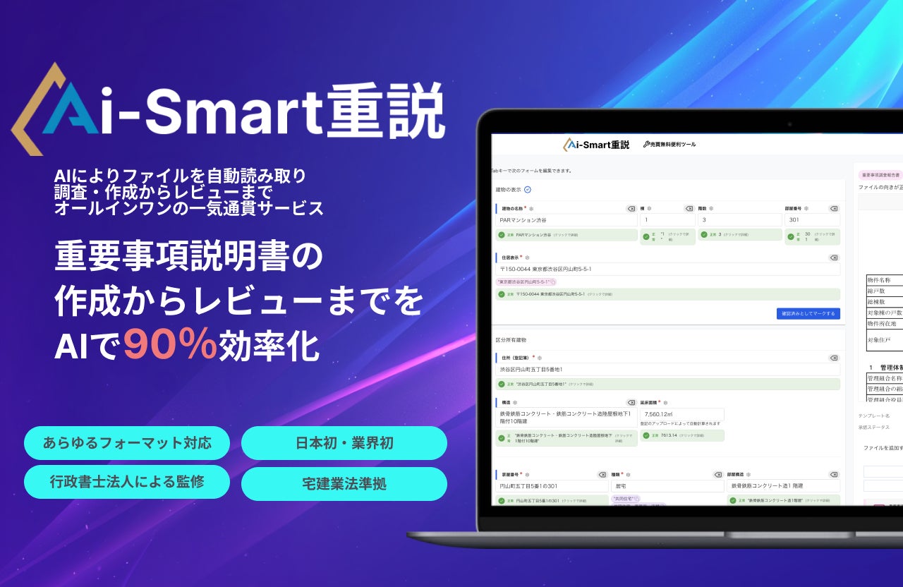 この新しいツールは、人工知能を活用して、不動産の重要事項説明書(重説)を最短10分で作成することができます。