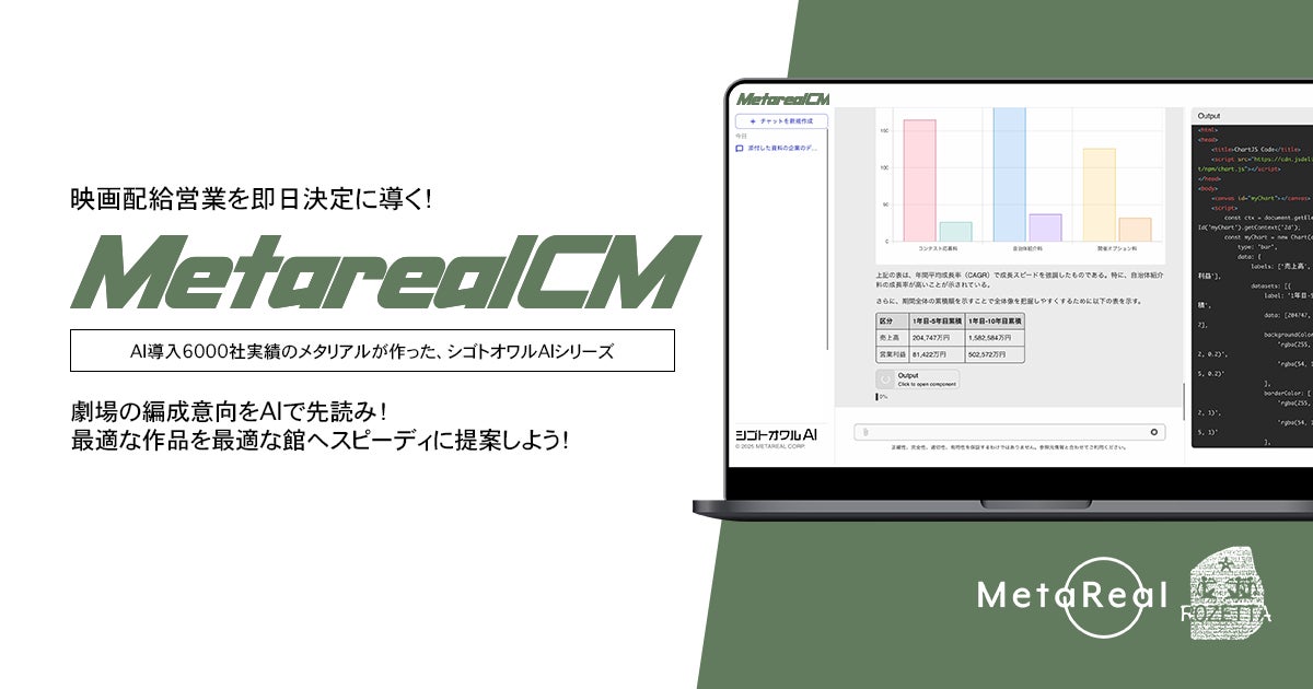 メタリアル・グループは、劇場向けの映画配給ニーズを予測するAIエージェント「Metareal シネマプリディクト(Metareal CM)」を2023年10月23日から提供開始しました。