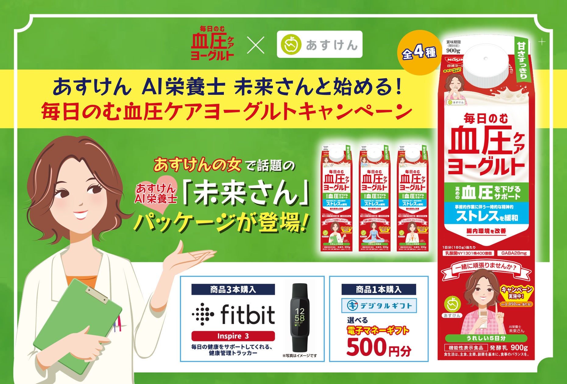 未来さんのファンに朗報!「毎日のむ血圧ケアヨーグルト」とAI食事管理アプリ『あすけん』がコラボしました。