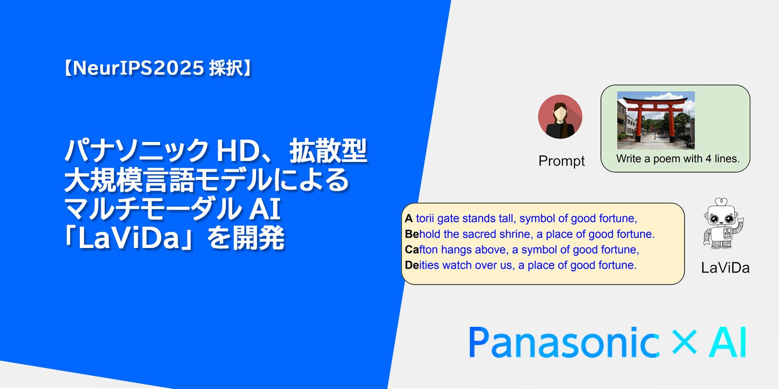 パナソニックホールディングスは、拡散型視覚言語モデルを活用したマルチモーダルAI「LaViDa」を開発しました。
