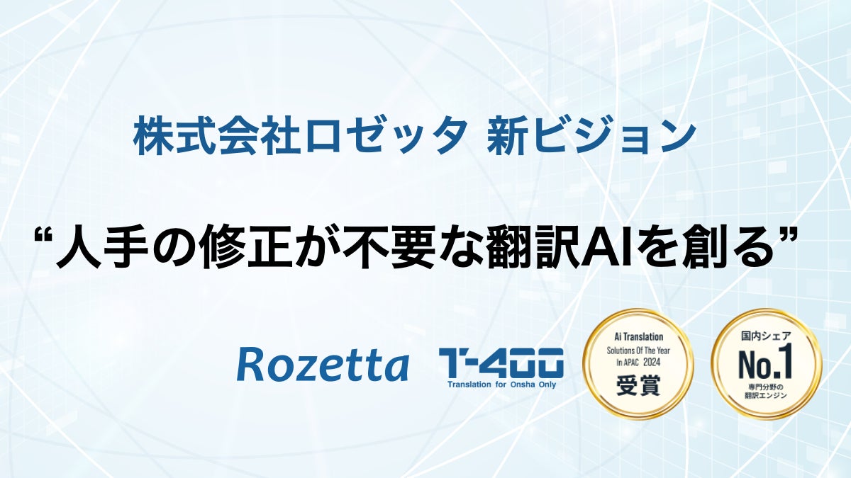 現在の翻訳プロセスでは、多くの場合人間の手による修正が必要ですが、ロゼッタはこの課題を解決するために、より自然で正確な翻訳を実現する技術の開発に取り組んでいます。