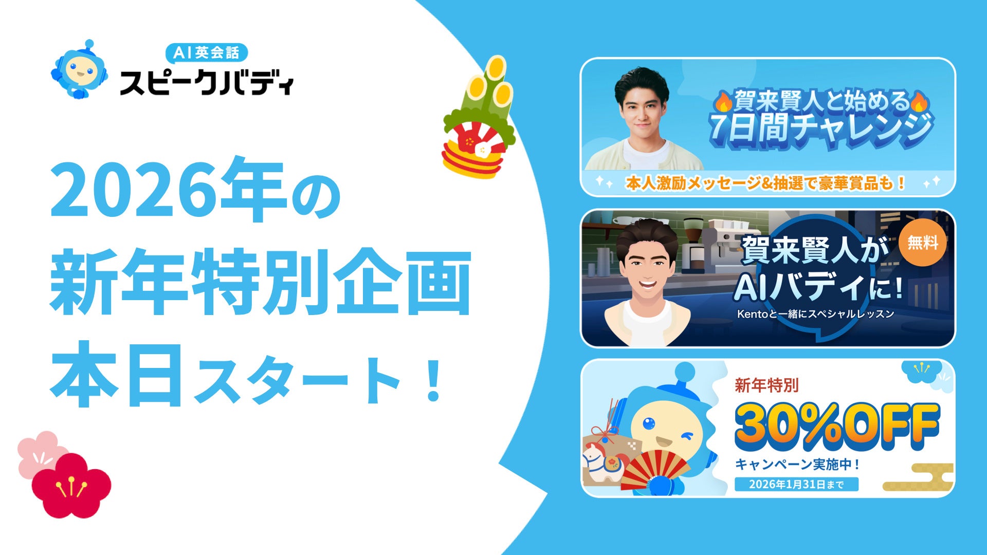 AI英会話スピークバディは、1月1日から新年の学習スタートを応援する特別企画を実施します。