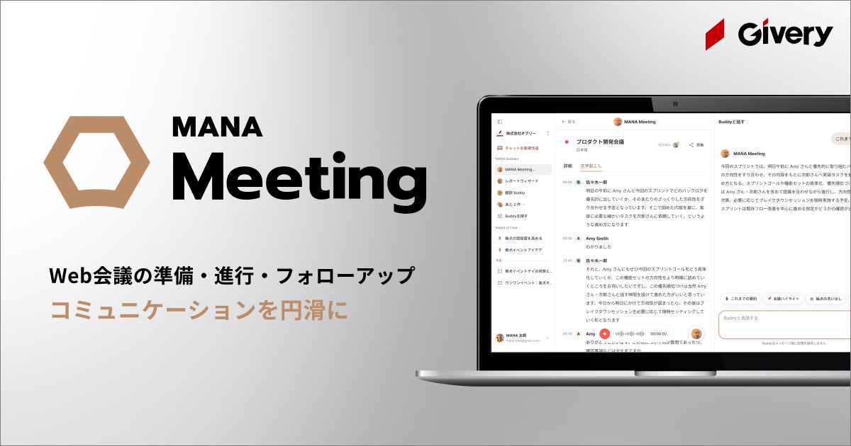 ギブリーは、Web会議を支援するAIエージェント「MANA Meeting」の提供を開始しました。
