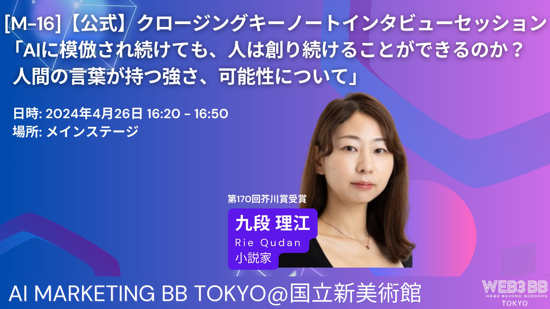 第170回芥川賞受賞作家の九段理江氏が初めてマーケティングイベントに登壇します。