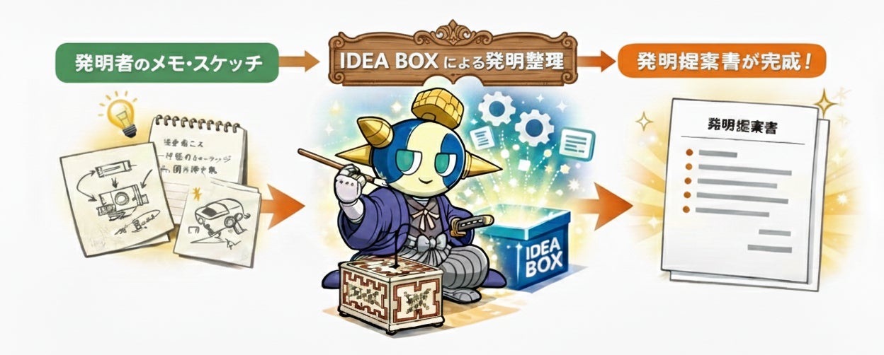 特に「IDEA BOX」機能の活用例を挙げ、発明者が持つアイデアを整理し、具体的な提案書にまとめる手法について詳述しています。