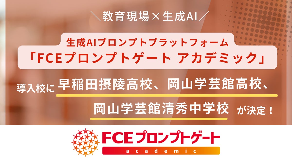 株式会社FCEは、教育機関向け生成AIプロンプトプラットフォーム「FCEプロンプトゲート アカデミック」を早稲田摂陵高等学校、岡山学芸館高等学校、岡山学芸館清秀中学校の3校に導入することを決定しました。