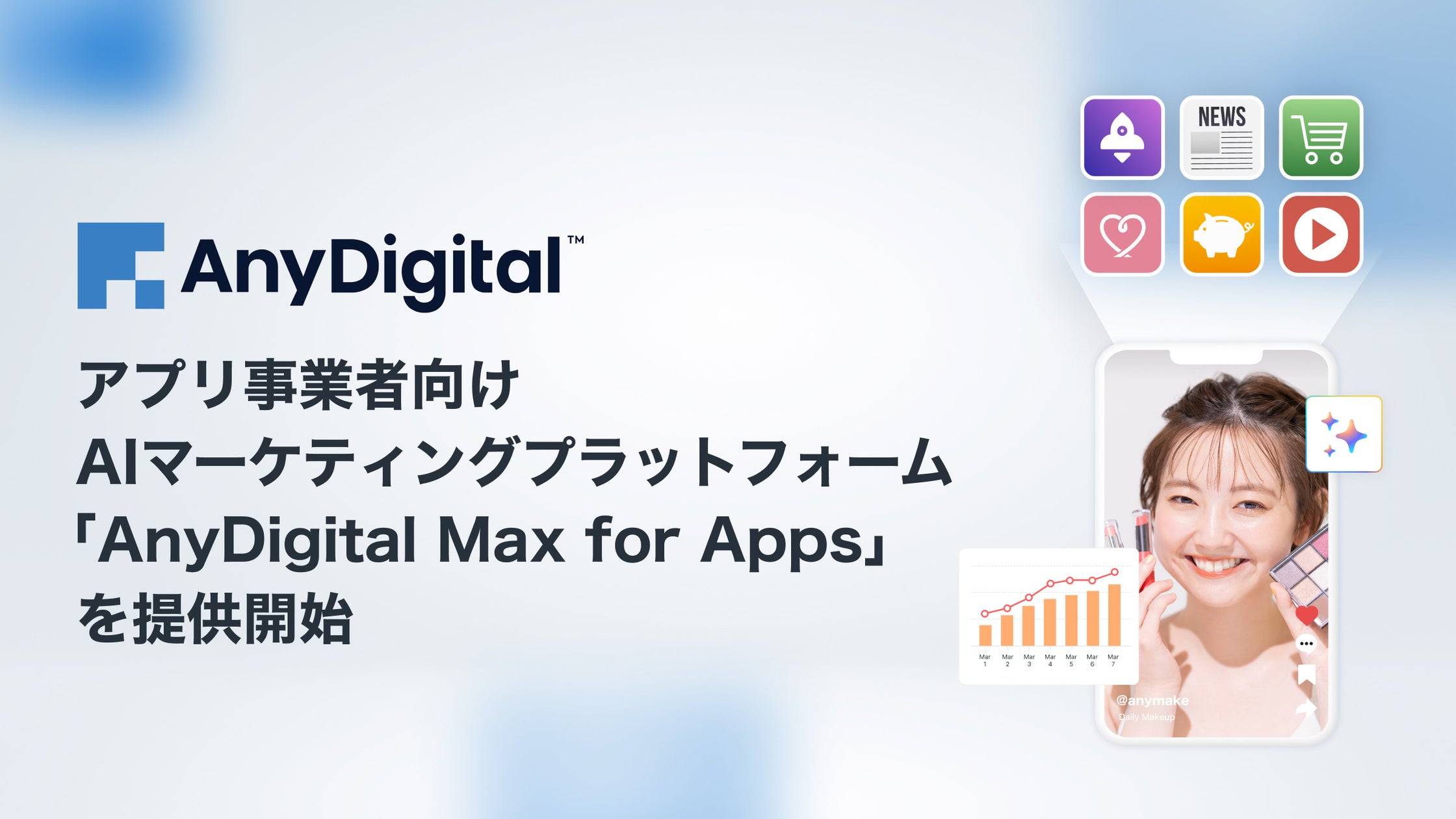 AnyMind Groupは、アプリ事業者向けのAIマーケティングプラットフォーム「AnyDigital Max for Apps」を新たに提供開始しました。