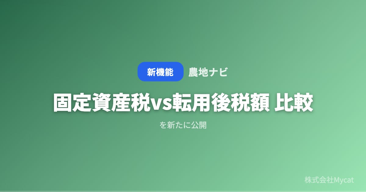 株式会社Mycatのプレスリリース(2026年4月3日 16時00分)「農地ナビ」、農地の「固定資産税 vs 転用後税額…