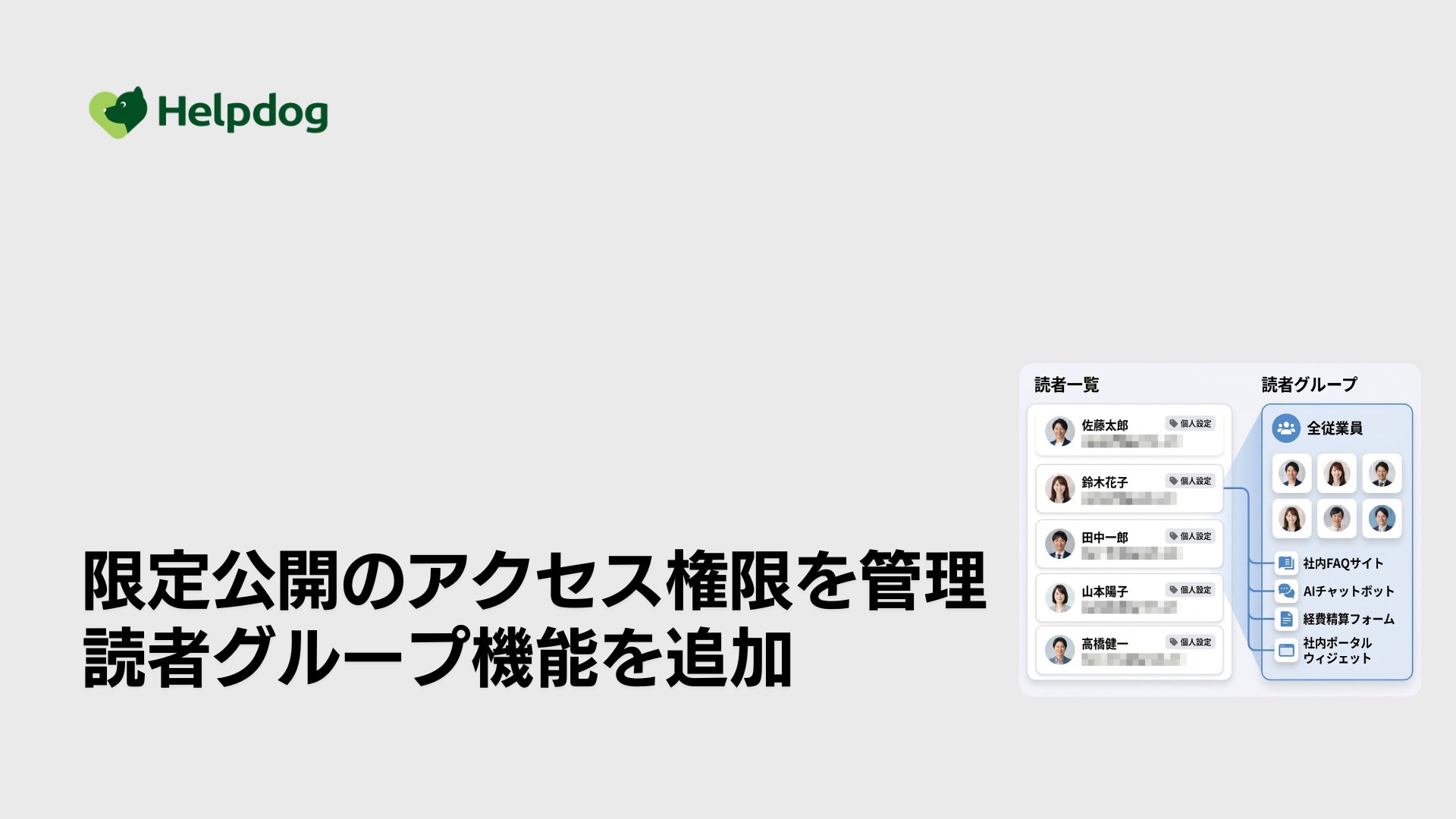 AIサポートシステム「ヘルプドッグ」が新たに「読者」と「読者グループ」機能を提供開始しました。
