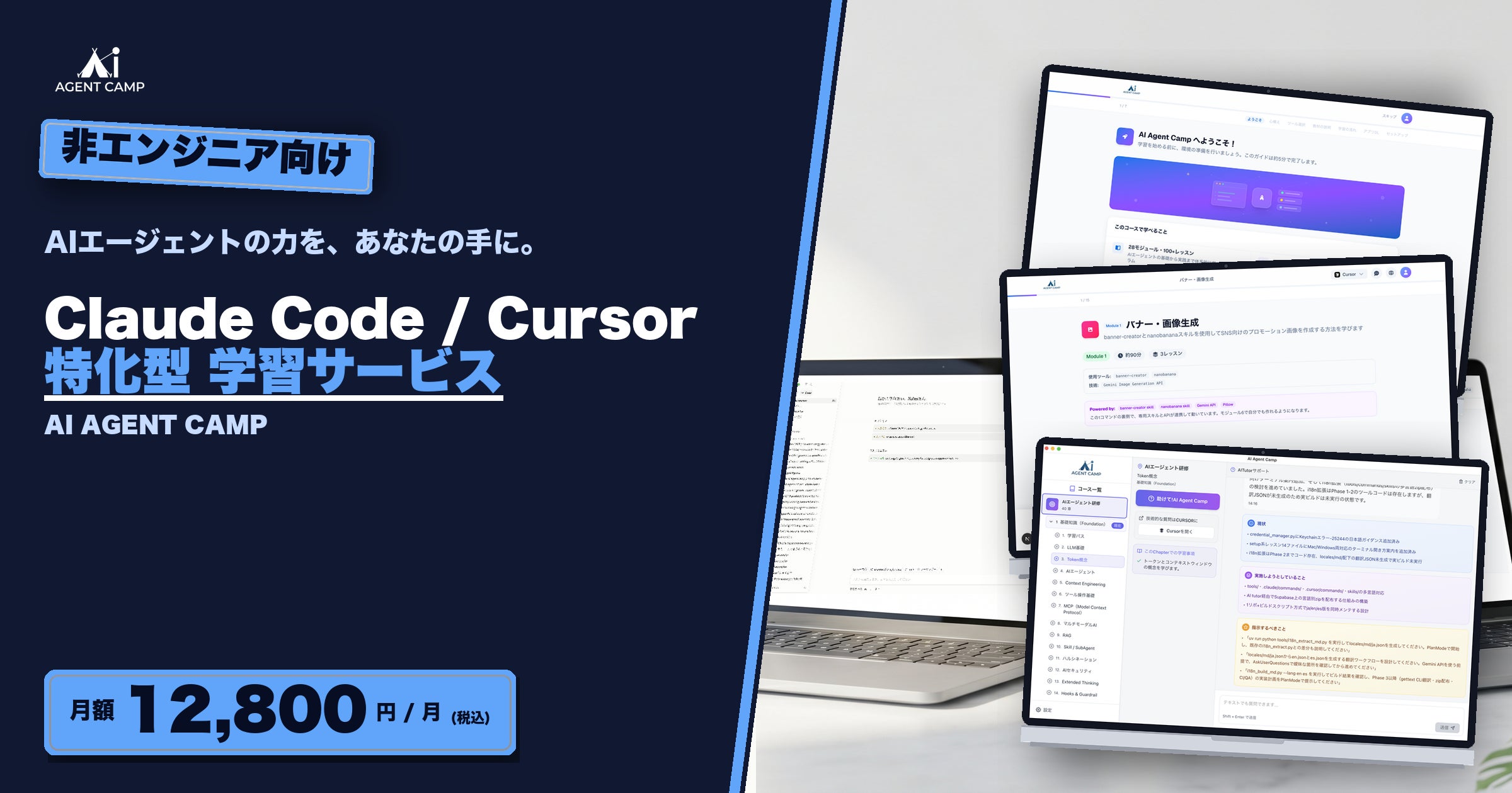 「AI Agent CAMP」は、日本初の非エンジニア向けに特化した学習サービスです。