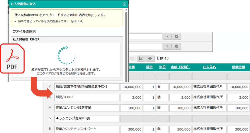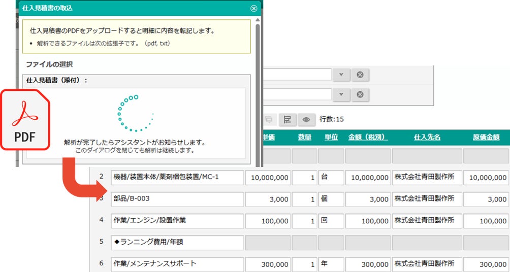 このシステムは、仕入見積書をもとに自動で販売見積書を生成することができます。