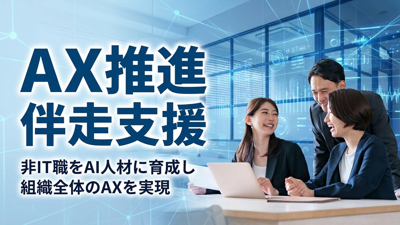 新たに提供される伴走支援サービスは、非IT職の人材をAI人材へと育成し、組織全体のAIトランスフォーメーション(AX)を実現することを目的としています。