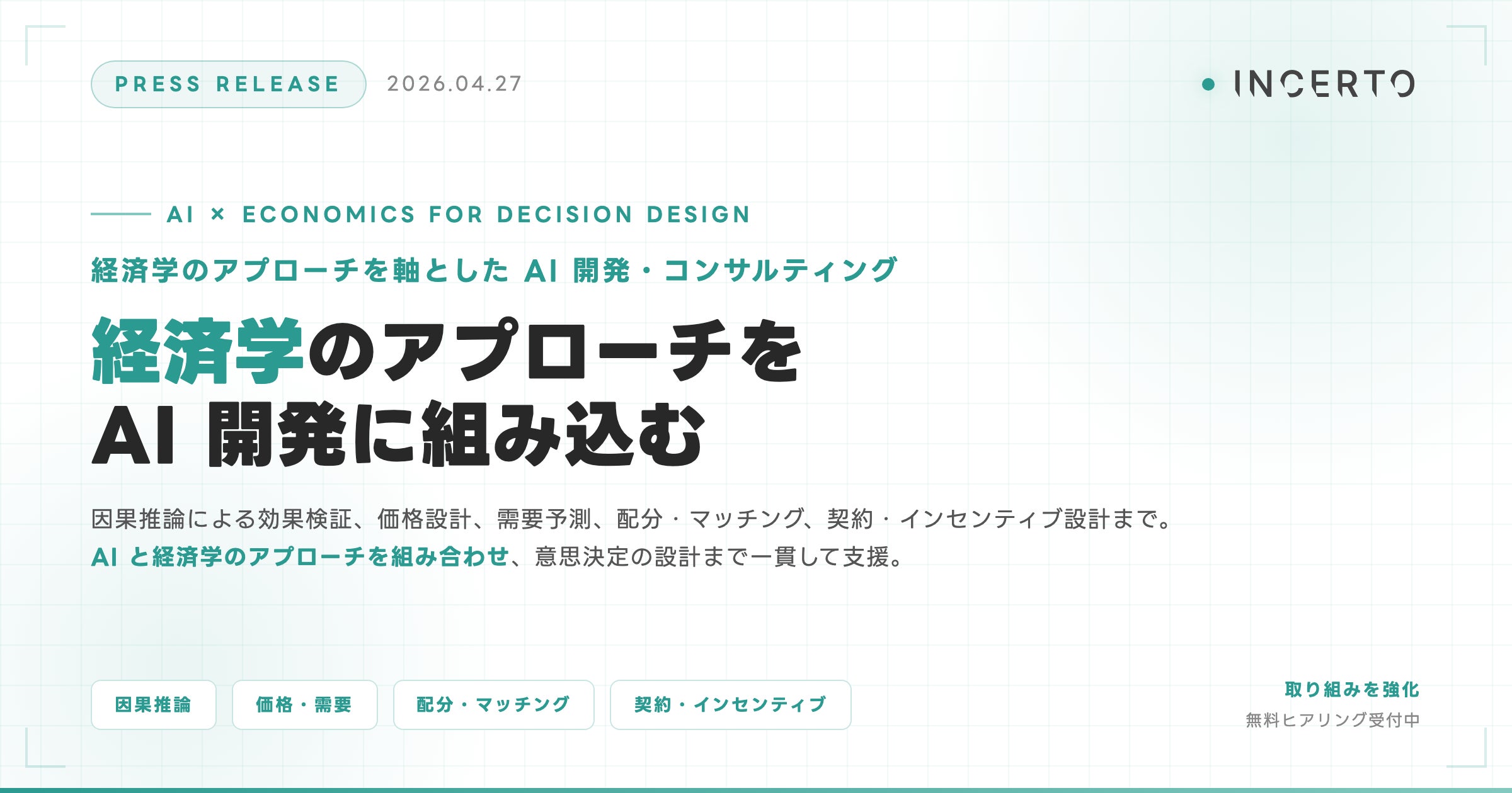 Incerto合同会社のプレスリリース(2026年4月27日 14時38分)経済学のアプローチを軸とした AI 開発・コ…