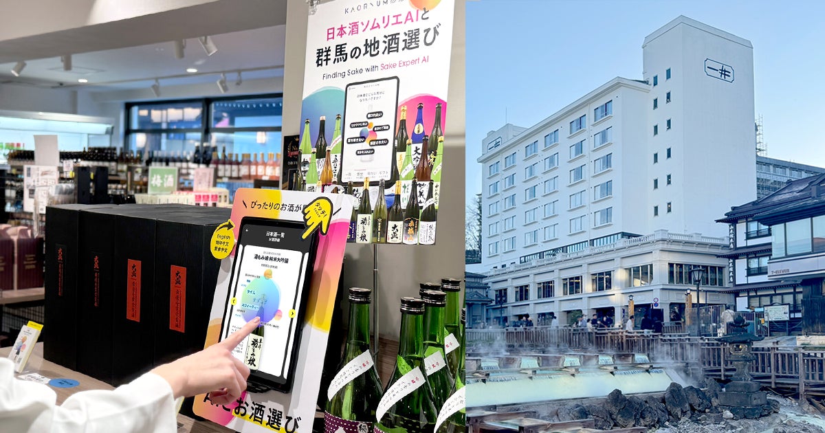 草津温泉の観光名所である湯畑にある「ホテル一井」に、お酒の風味と香りを言語化する日本酒ソムリエAI「KAORIUM for Sake」が導入されました。