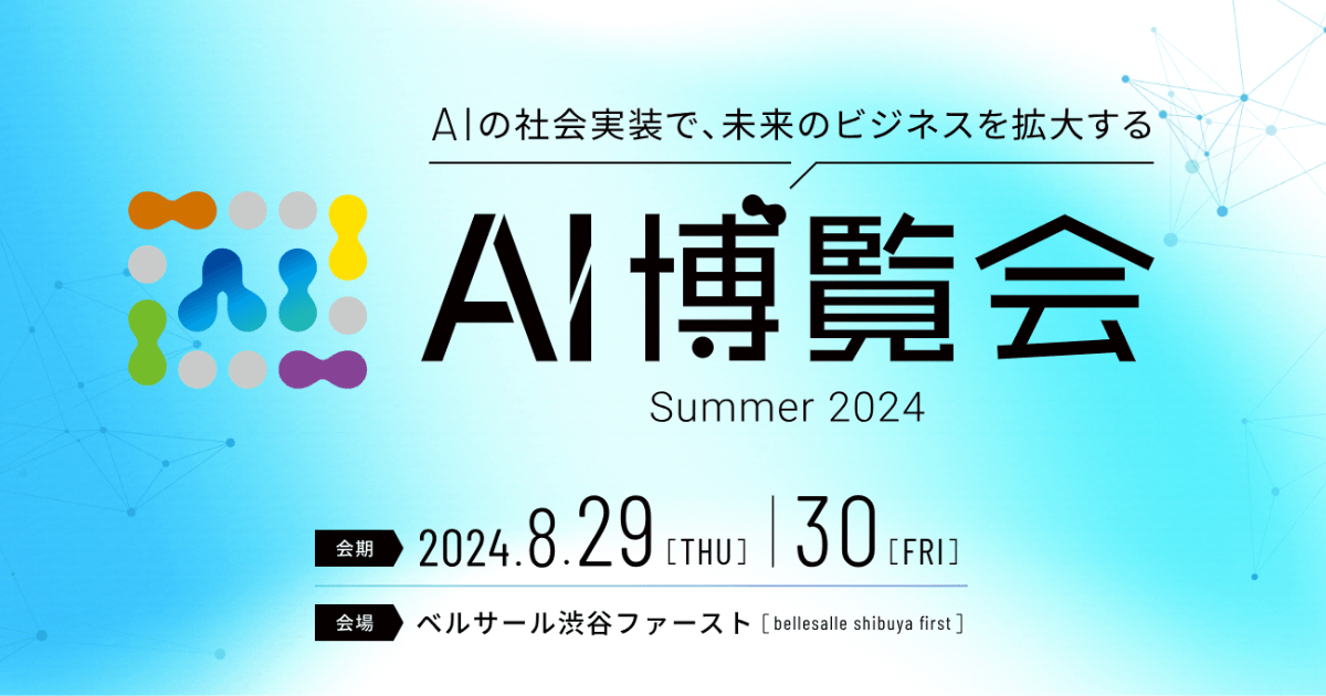 AIポータルメディア「AIsmiley」が、2024年8月29日(木)~8月30日(金)に「AI博覧会 Summer 2024」を開催します。