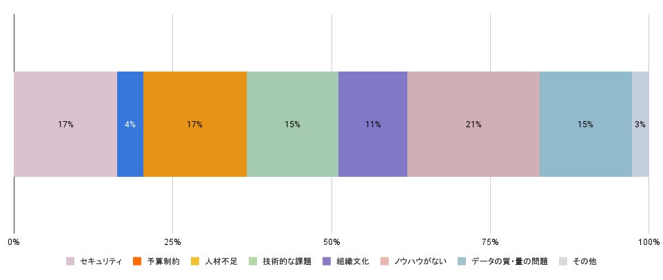 一方、ノウハウ不足やセキュリティ、人材不足がAI活用の障壁となっており、技術的な課題や組織文化の変化に対する懸念もあります。