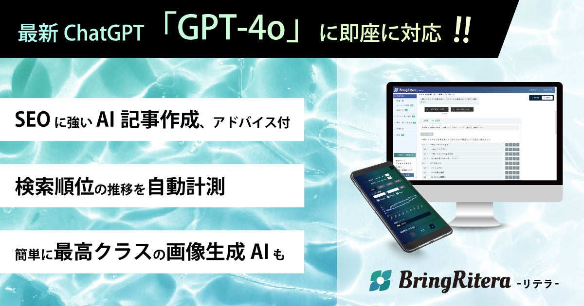 株式会社BringFlowerは、最新のChatGPT「GPT-4o」に対応したAIライティングツール「BringRitera(リテラ)」を発表しました。