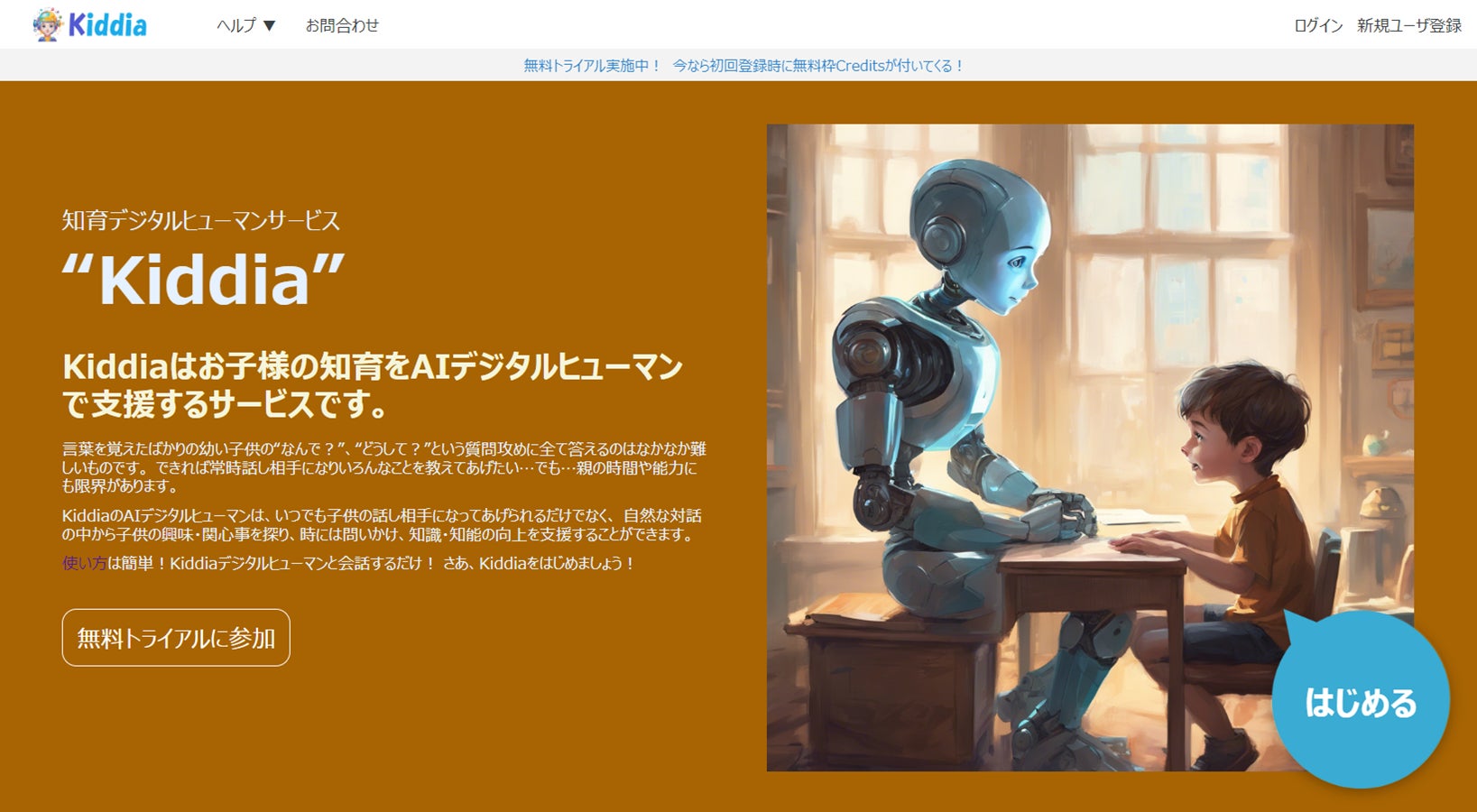 『Kiddia』は、いつでもお子様に寄り添う”専属家庭教師”のようなAIデジタルヒューマンを提供するWebサービスで、子供と自然な対話を行い、興味や関心事を探り、知識や知能の向上をサポートします。
