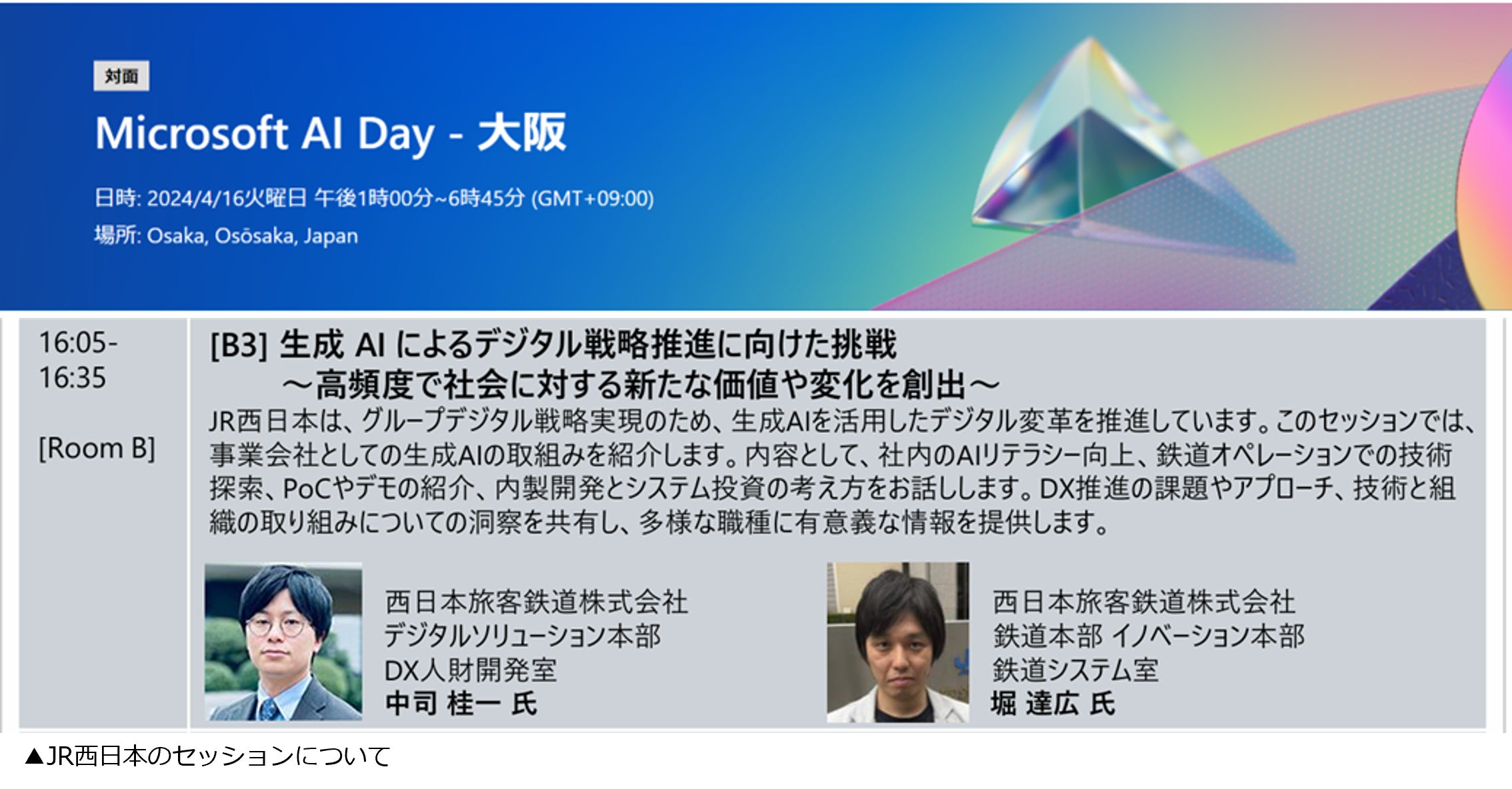 株式会社ヘッドウォータースは、Microsoft AI DayのセッションでJR西日本のパートナーとして紹介されました。