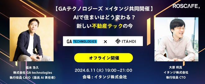 6月11日に開催されるイベント「【GAテクノロジーズ×イタンジ共催】AIで住まいはどう変わる?不動産テックの今」についての概要です。