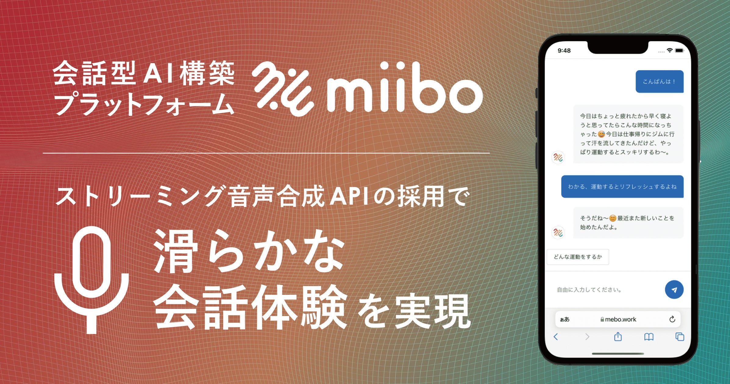 株式会社miiboは、株式会社エーアイの入力ストリーミング音声合成APIを採用し、考えながら喋るAIとの滑らかな会話体験を実現するソリューションを開発しました。